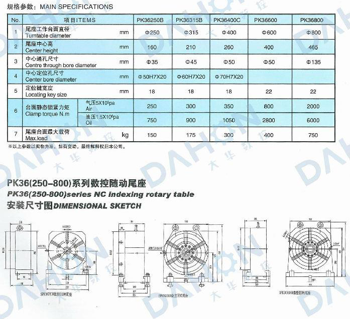 table.It has function of the common tailstock,and that can rotate and clamp synchroni-zation with the table.It applies the air pressure(or hydraulic )collets,chuck or centre to clamp the work-piece with table,and carries out the performance: direct and indirect dividing,plate-slotting and various cam-curving.